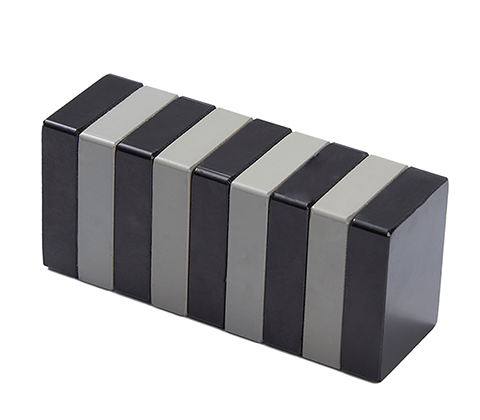 Halbach 陣列通過特定方式排列的永久磁體,可以在一側(cè)增強(qiáng)磁場(chǎng),另一側(cè)則弱化甚至消除磁場(chǎng)。這種特性使得它在需要定向磁場(chǎng)的應(yīng)用中非常有用。Halbach 陣列可以實(shí)現(xiàn)比普通磁體更高的磁場(chǎng)強(qiáng)度和效率。
